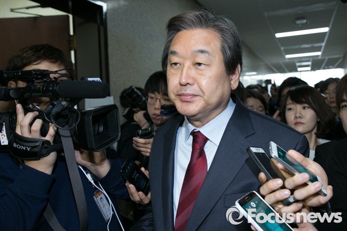 (서울=포커스뉴스) 김무성 새누리당 대표가 21일 오전 서울 여의도 국회에서 열린 최고위원회를 마친 뒤, 기자들의 질문을 들으며 밖으로 나가고 있다.
