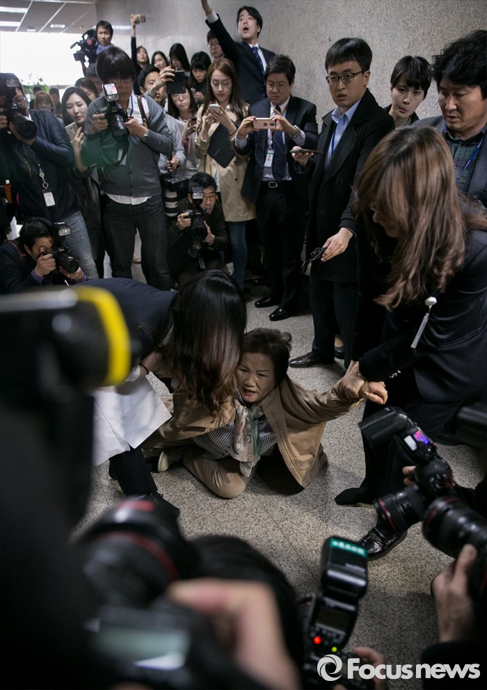 | △ 방호 직원들에게 끌려나가는 더민주 실버위원회 당원 |