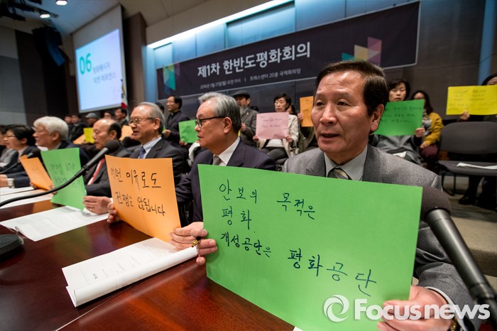 (서울=포커스뉴스) 정기섭 개성공단기업협회 회장이 21일 오전 서울 중구 프레스센터 국제회의장에서 열린 '제1차 한반도평화회의'에 참석해 개성공단 정상화를 촉구 하고 있다.
