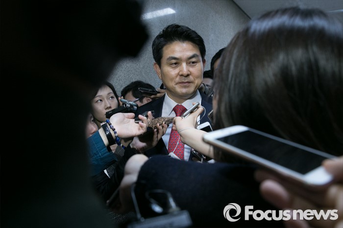 (서울=포커스뉴스) 김태호 새누리당 최고위원이 21일 오전 서울 여의도 국회에서 열린 최고위원회를 마친 뒤, 기자들의 질문을 들으며 밖으로 나가고 있다.