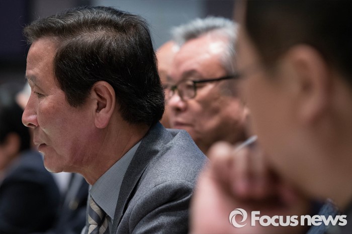 (서울=포커스뉴스) 21일 오전 서울 종로구 프레스센터에서 열린 제1차 '한반도 평화 회의'에서 참석한 정기섭 개성공단기업협의회 회장이 대북관계 긴장 완화를 촉구하고 있다.