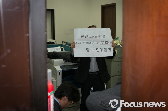 | △ 더민주 회의실 항의 방문한 실버위원회 당원들 |