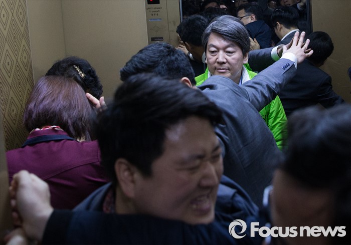 (서울=포커스뉴스) 안철수 국민의당 상임공동대표가 21일 오전 서울 여의도 국회 의원회관에서 열린 최고위원회의를 마친 후 당원들의 호남 지역구 공천 결과에 대한 항의를 받으며 회의장을 빠져나가고 있다.