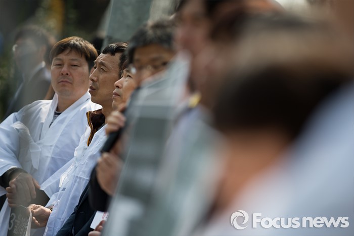 (서울=포커스뉴스) 21일 오전 서울 서초구 현대자동차 본사에서 열린 유성기업 故 한광호 사망 현대자동차 규탄 기자회견에서 유성기업 공대위와 시민사회단체들이 피켓을 들고 있다.