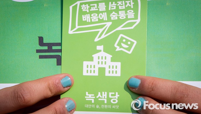 (서울=포커스뉴스) 21일 오전 서울 광화문 광장에서 열린 녹색당 교육(배움) 공약 발표 기자회견에 참석한 학생이 '학교를 뒤집자, 배움에 숨통을'이 적힌 소형 손팻말을 들고 있다.