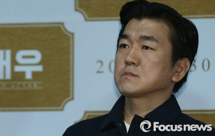 (서울=포커스뉴스) 21일 오후 서울 광진구 건대입구 롯데시네마에서 열련 영화 '대배우' 언론시사회에 참석한 배우 윤제문이 취재진에게 질문을 받고 있다.