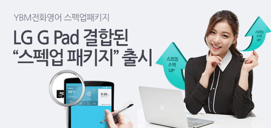 (서울=포커스뉴스) YBM전화영어는 영어회화 수강권과 LG전자 'GPad(G패드) II' 태블릿을 결합한 '스펙업 패키지' 상품을 출시했다고 21일 밝혔다.