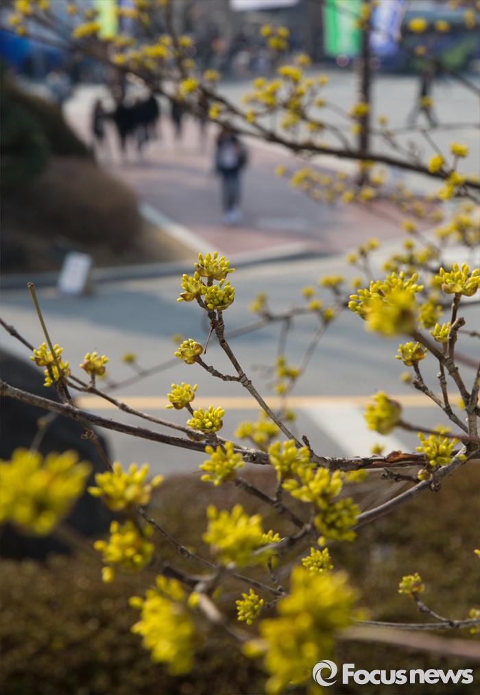 기상청은 "서해상과 남해상에 안개가 끼는 곳이 있겠으니 항해나 조업하는 선박은 유의해야 한다"고 당부했다.(청주=포커스뉴스) 완연한 봄 날씨를 보인 지난 17일 오전 충북 청주시 청원구 청주대학교 캠퍼스에서 만개한 산수유 아래로 학생들이 지나고 있다. 2016.03.17 김기태 기자
