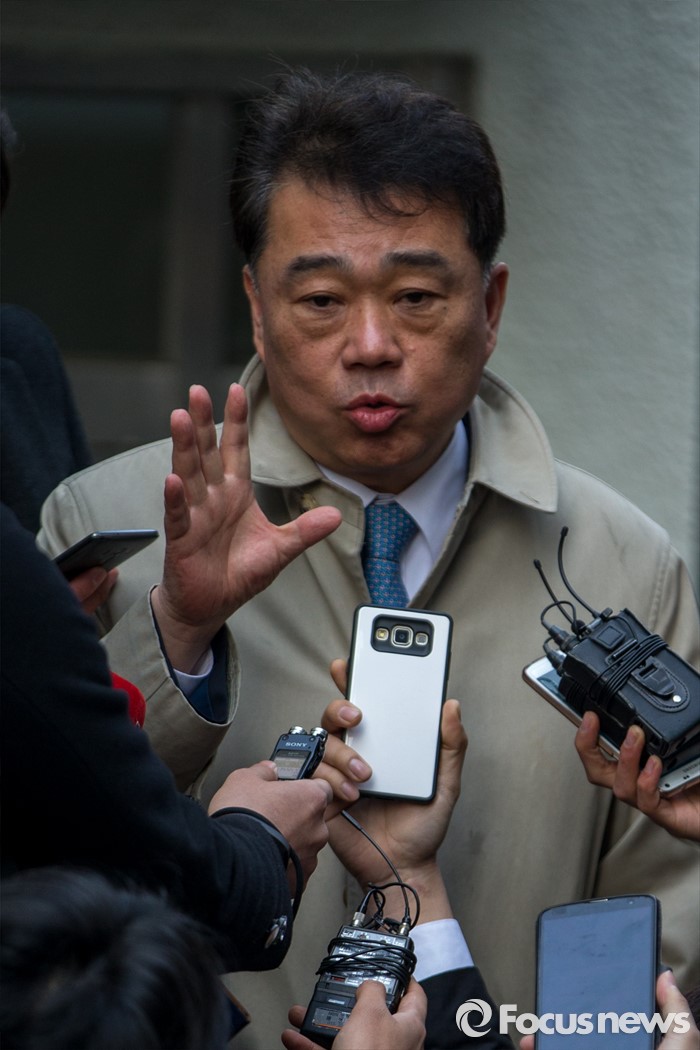(서울=포커스뉴스) 김성수 더불어민주당 대변인이 김종인 비상대책위 대표와의 면담을 마친 뒤 22일 오전 서울 종로구 김 대표 자택을 나선 뒤 취재진 질문에 답하고 있다.
