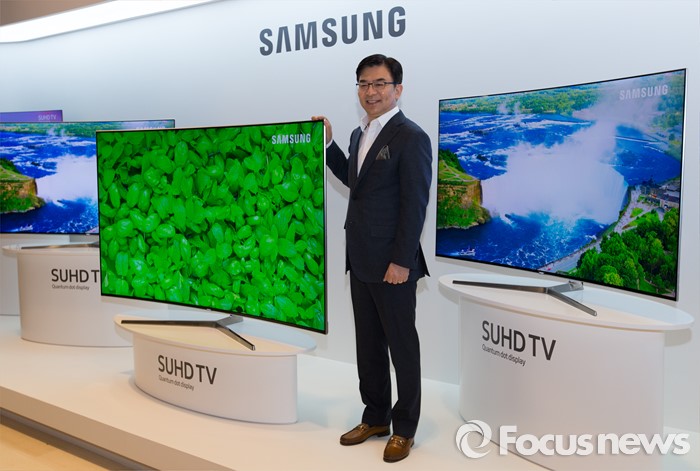 (서울=포커스뉴스) 김현석 삼성전자 영상디스플레이사업부 사장이 22일 오전 서울 강남구 삼성전자 서초사옥에서'퀀텀닷 디스플레이 SUHD TV' 제품을 선보이고 있다.