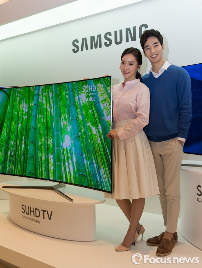 (서울=포커스뉴스) 22일 오전 서울 강남구 삼성전자 서초사옥에서 모델들이 '퀀텀닷 디스플레이 SUHD TV' 제품을 선보이고 있다.