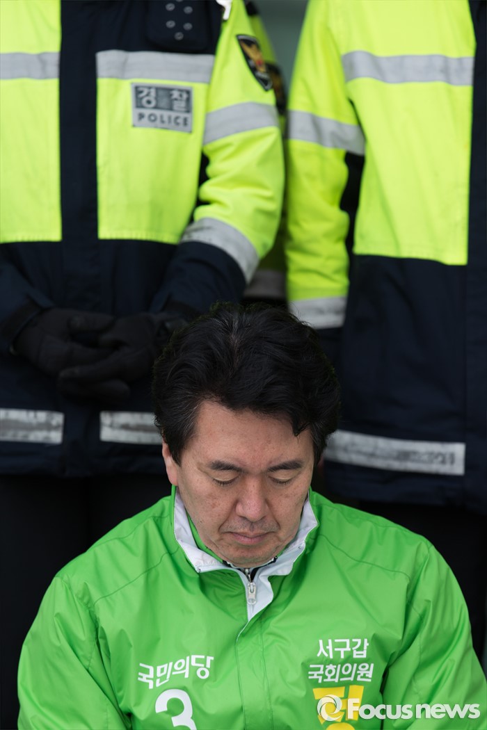(서울=포커스뉴스) 국민의당에서 공천 탈락한 정용화 전 광주유니버시아드 조직위원회 부위원장이 22일 오전 서울 마포구 국민의당 당사 앞에서 경선 결과에 부당함을 호소하는 시위를 하고 있다.