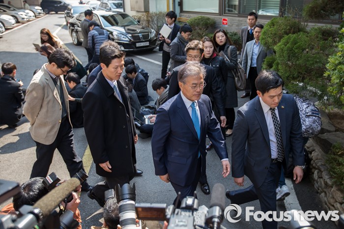 (서울=포커스뉴스) 문재인 전 더불어민주당 대표가 김종인 비상대책위 대표와 면담하기 위해 22일 오후 서울 종로구 김 대표 자택으로 이동하고 있다.