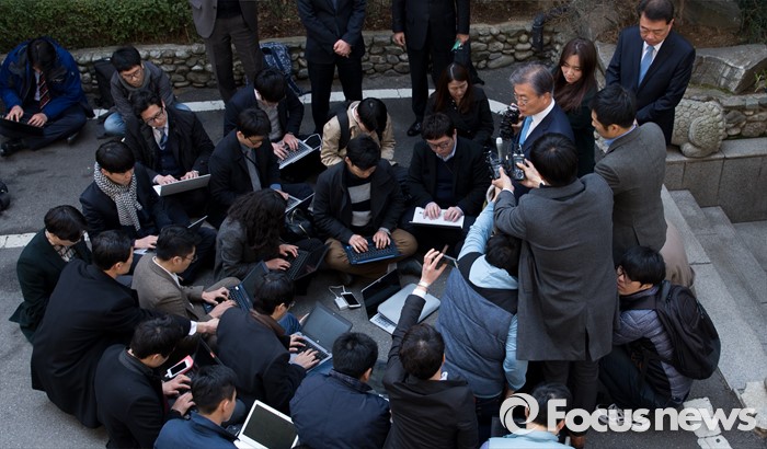 (서울=포커스뉴스) 문재인 더불어민주당 전 대표가 22일 오후 서울 종로구 구기동의 김종인 비상대책위원회 대표와 면담 후 김 대표 자택을 나서며 취재진 질문에 답하고 있다.