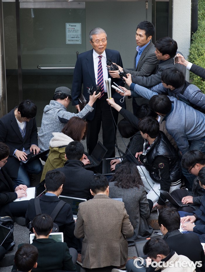 | △ 취재진 질문 답하는 김종인 |