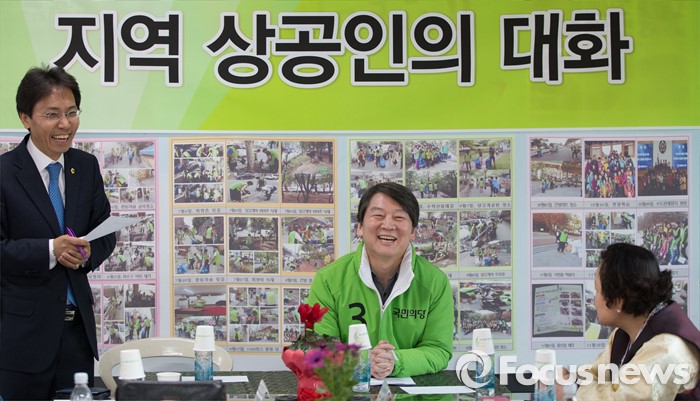 (서울=포커스뉴스) 안철수 국민의당 상임공동대표(가운데)가 22일 오후 서울 노원구 상계동 김광수 서울시의원 사무실에서 지역상공인들과 대화의 시간을 갖고 있다.