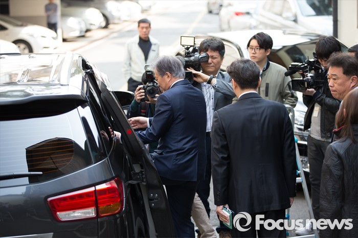 (서울=포커스뉴스) 문재인 전 더불어민주당 대표가 김종인 비상대책위 대표와 면담을 마친 22일 오후 서울 종로구 김 대표 자택을 나서고 있다.
