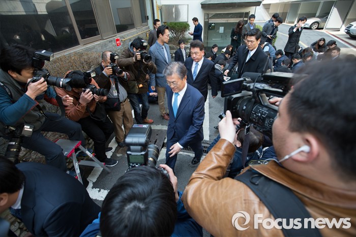 (서울=포커스뉴스) 문재인 전 더불어민주당 대표가 김종인 비상대책위 대표와 면담을 마친 22일 오후 서울 종로구 김 대표 자택을 나서고 있다.