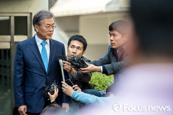 | △ 취재진 질문에 답하는 문재인 전 대표 |