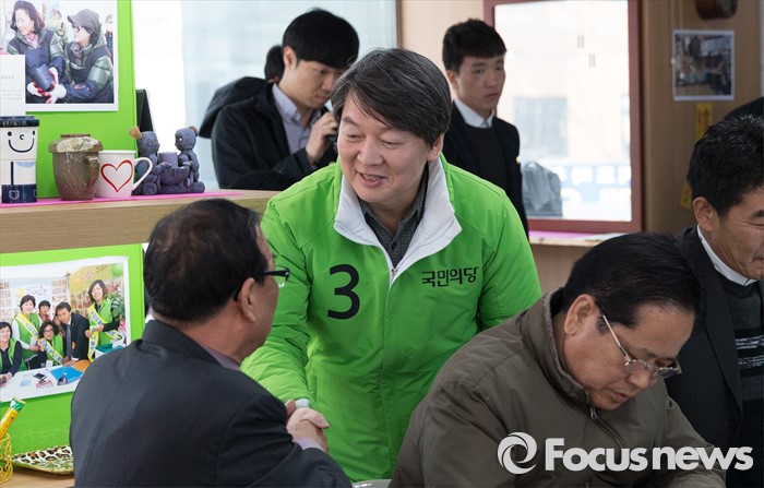 (서울=포커스뉴스) 안철수 국민의당 상임공동대표가 22일 오후 서울 노원구 상계동 김광수 서울시의원 사무실에서 지역상공인들과 인사를 나누고 있다.