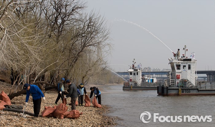 (서울=포커스뉴스) 22일 오후 서울 영등포구 밤섬에서 한강사업본부 관계자들과 자원봉사자들이 조류 산란기 전 버드나무에 쌓인 민물가마우지의 배설물 등을 청소하고 있다.