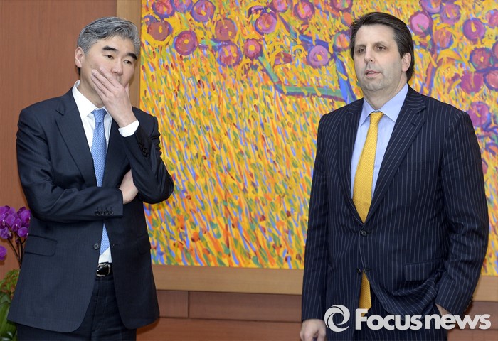 (서울=포커스뉴스)22일 오후 서울 종로구 외교부 청사에서 성김(왼쪽) 미 대북정책 특별대표와 마크 리퍼트 주한미국 대사가 윤병세 외교부 장관과 접견에 앞서 생각에 잠겨 있다.