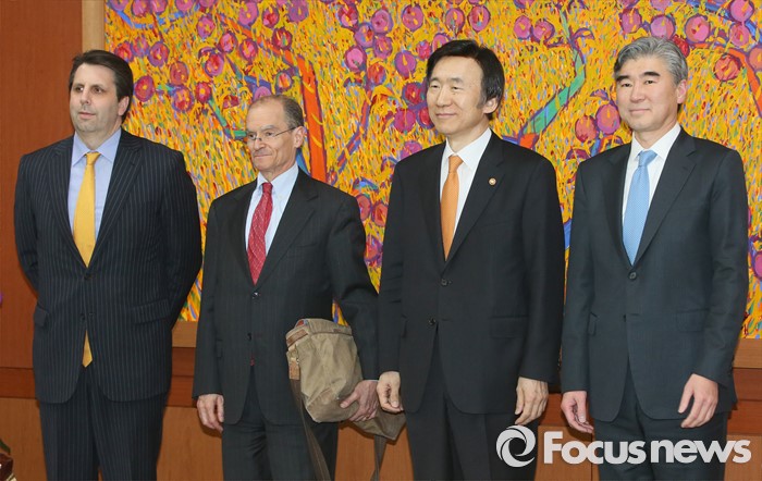 (서울=포커스뉴스)마크 리퍼트(왼쪽부터) 주한미국대사, 대니얼 프리드 미 국무부 제재정책조정관, 윤병세 외교부 장관, 성김 미 국무부 대북정책특별대표가 22일 오후 서울 종로구 외교부에서 만나 기념촬영을 하고 있다.