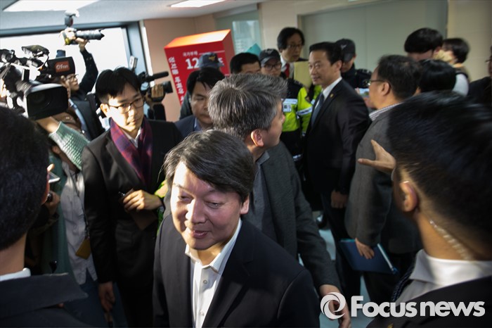 (서울=포커스뉴스) 22일 오후 서울 마포구 국민의당 당사에서 안철수 국민의당 상임공동대표가 PI론칭 발표를 마친 후 브리핑실을 나서다 공천에서 떨어진 전 농구선수 김해곤 씨의 강한 항의를 피해 당사를 떠나고 있다.