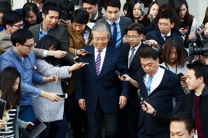 | △ 취재진 질문 받으며 이동하는 김종인 |