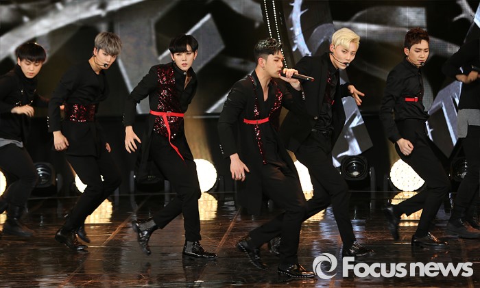 (서울=포커스뉴스) 22일 오후 서울 마포구 SBS프리즘 타워에서 열린 2016 '더쇼' 생방송에 참여한 보이그룹 뉴이스트가 '여왕의 기사' 무대를 선보이고 있다.