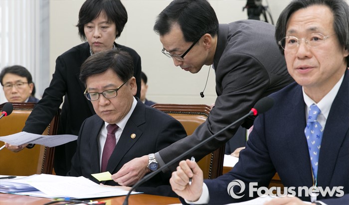 이날 긴급당정협의회에는 새누리당측 김정훈 정책위의장, 국회 보건복지위원회 여당 간사 이명수 의원과 정부측 정진엽 보건복지부 장관, 정기석 질병관리본부장 등이 참석한다.15일 오전 서울 여의도 국회에서 지카바이러스 대응 현황 및 보육 관련 현안·대책 논의를 위해 열린 보건복지위원회 전체회의에 참석한 정진엽(왼쪽) 보건복지부 장관이 직원들로부터 자료를 받고 있다. 오른쪽은 정기석 질병관리본부장. 2016.02.15 박동욱 기자