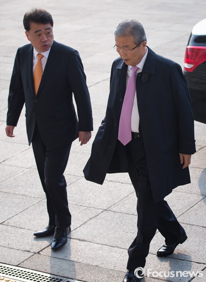 (서울=포커스뉴스) 김종인 더불어민주당 비대위 대표가 23일 오전 서울 여의도 국회에서 열리는 비공개 회의에 참석하기 위해 본관 입구를 들어서고 있다.