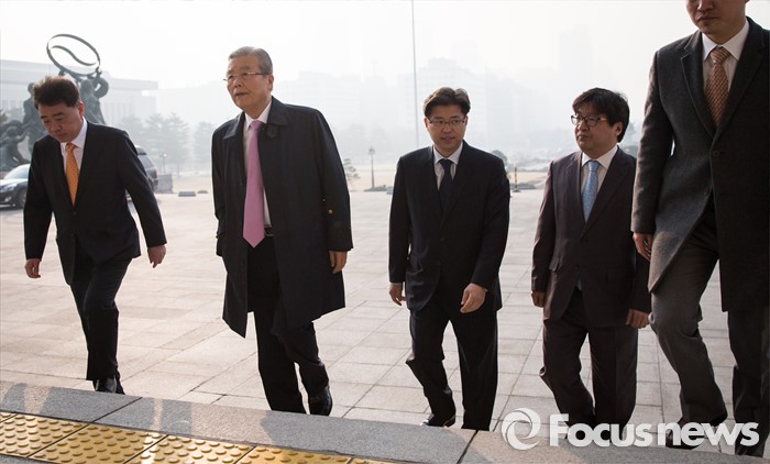 (서울=포커스뉴스) 김종인 더불어민주당 비대위 대표가 23일 오전 서울 여의도 국회에서 열리는 비공개 회의에 참석하기 위해 본관 입구를 들어서고 있다.