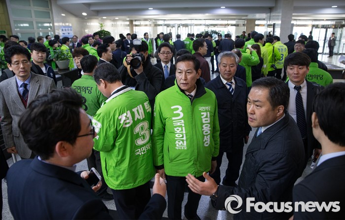 (서울=포커스뉴스) 국민의당이 23일 오전 10시 30분 서울 여의도 국회 본청 제 3회의실에서 후보 공천장 수여식을 열 예정이었으나 공천탈락 후 결선투표를 주장하고 있는 김승남 의원과 지지자들의 항의로 인해 행사 장소를 급히 당사로 옮겼다. 공천장 수여식 참석 대기중이던 예비후보들이 국회에서 당사로 자리를 옮기고 있다.