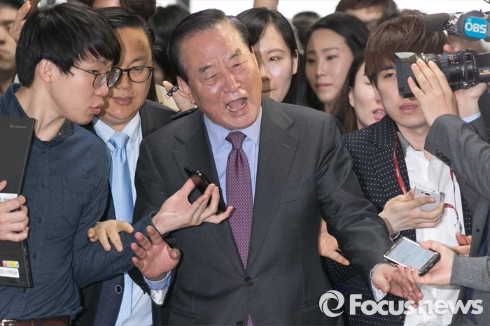 (서울=포커스뉴스) 서청원 새누리당 최고위원이 23일 오전 서울 여의도 국회에서 최고위원회의를 마친 뒤, 기자들의 질문에 답변하며 밖으로 나가고 있다.