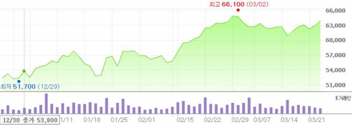 이에 따라 LG전자에 대한 목표주가를 종전 7만4000원에서 7만8000원으로 상향 조정했다.최근 3개월간 LG전자 주가 추이 <그래픽출처=네이버>
