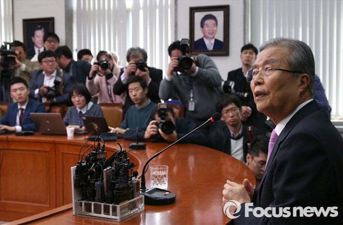 (서울=포커스뉴스) 김종인 더불어민주당 비대위 대표가 23일 오후 서울 여의도 국회에서 당 잔류와 관련 기자간담회를 하고 있다.