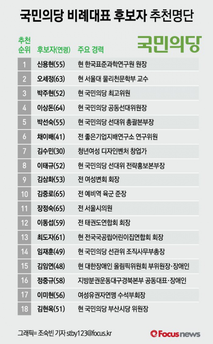 (서울=포커스뉴스) 국민의당이 23일 오는 20대 총선에 나설 비례대표 후보자 18명의 명단을 발표했다.
