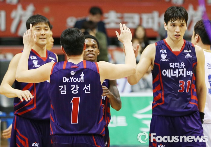 (고양=포커스뉴스) 23일 고양체육관에서 열린 2015-2016 프로농구 챔피언결정전 3차전 오리온-KCC경기에서 KCC에 승리한 오리온 선수들이 기뻐하고 있다.