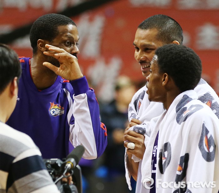 (고양=포커스뉴스) 23일 고양체육관에서 열린 2015-2016 프로농구 챔피언결정전 3차전 오리온-KCC경기에서 오리온 헤인즈, 문태종, 조 잭슨이 경기를 마치고 웃으며 얘기를 나누고 있다.