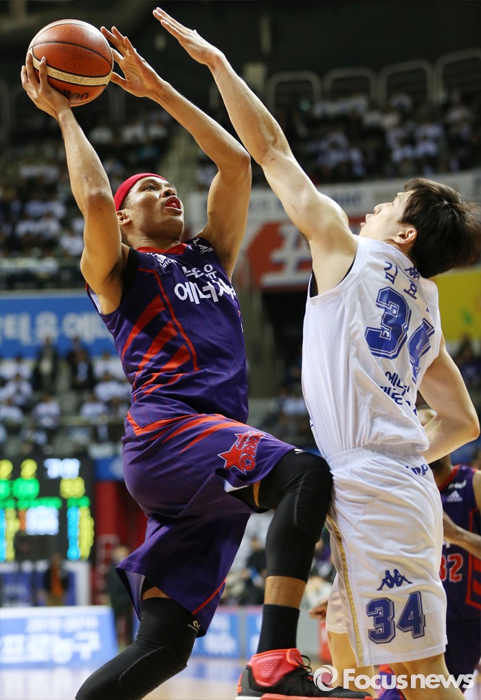 (고양=포커스뉴스) 23일 고양체육관에서 열린 2015-2016 프로농구 챔피언결정전 3차전 오리온-KCC경기에서 오리온 문태종이 KCC 김효범의 블록을 피하며 점프슛을 시도하고 있다.