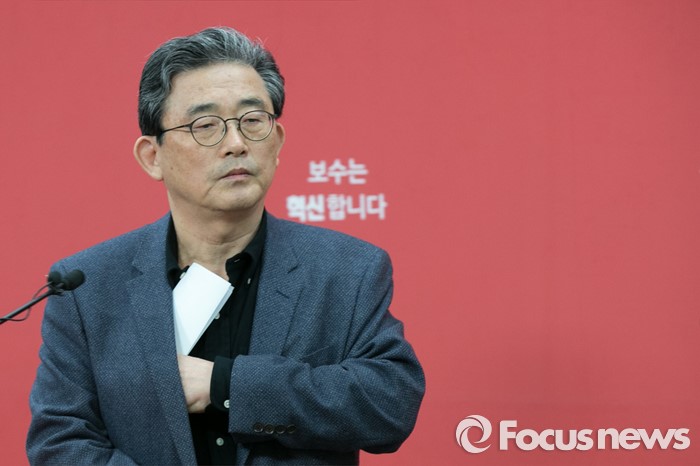 (서울=포커스뉴스) 이한구 새누리당 공천관리위원장이 24일 오전 서울 여의도 당사 브리핑실에서 기자회견을 마친 뒤, 단상을 내려오고 있다.