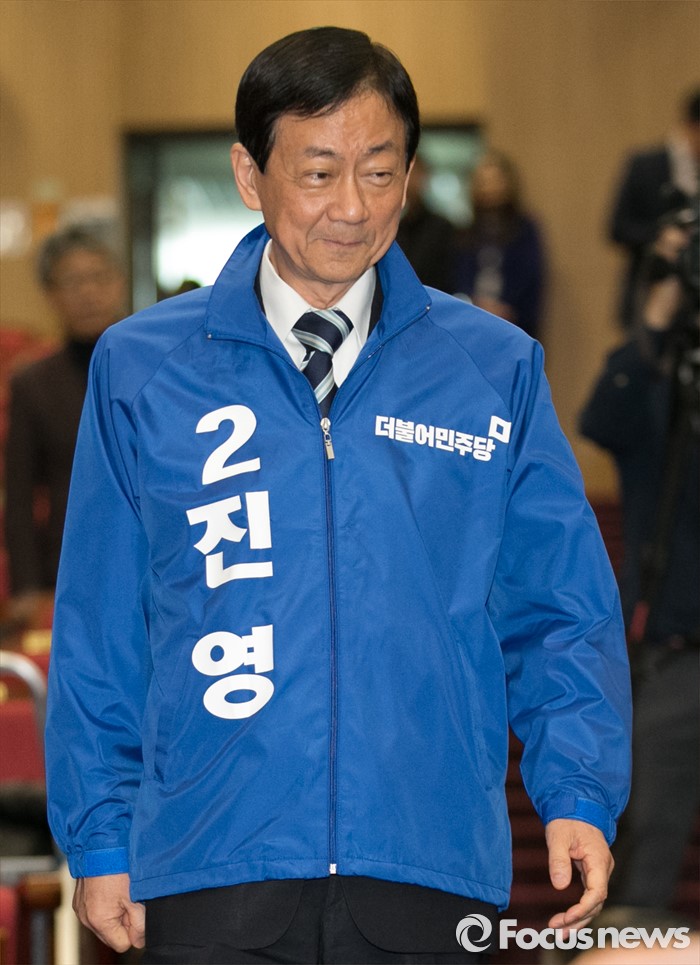 (서울=포커스뉴스) 새누리당을 탈당하고 더불어민주당에 입당한 진영 의원이 24일 오전 서울 여의도 국회에서 열린 20대 총선 공천장 수여식에 참석하고 있다.