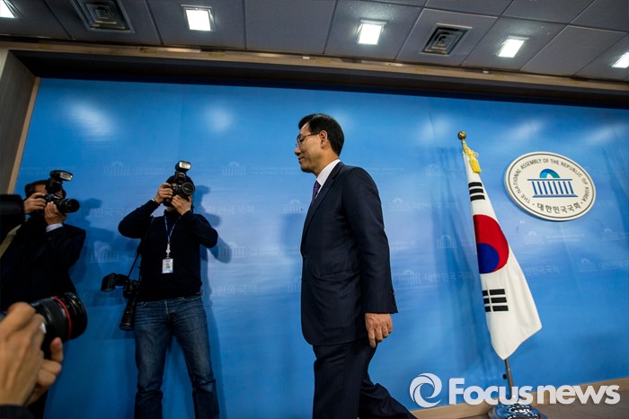 (서울=포커스뉴스) 20대 총선에서 새누리당 공천을 받지 못한 주호영(대구 수성을) 의원이 24일 오전 서울 영등포구 국회 에서 무소속 출마 발표를 마친 뒤 정론관을 나서고 있다.