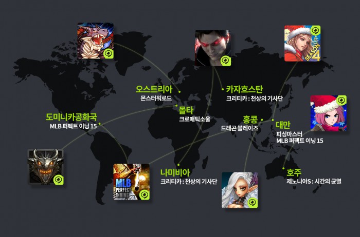 실제 '크리티카: 천상의 기사단'은 아프리카 나미비아 애플 앱스토어 게임 전체 매출 1위에 랭크됐으며, 카자흐스탄에서는 역할수행게임(RPG) 매출 1위에 올랐다. 'MLB 퍼펙트 이닝 15'의 경우, 대만의 구글 플레이와 애플 앱스토어에서 스포츠 게임 중 최고 매출을 기록한데 이어 도미니카공화국에서도 스포츠 게임 장르 매출 1위를 차지하고 있다.