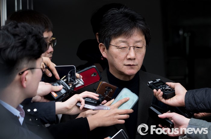 (대구=포커스뉴스) 전날 새누리당 탈당과 함께 무소속 출마를 선언한 대구 동구을 유승민 의원이 24일 오후 대구 동구의 사무소에서 지지자들과 만나고 나와 취재진 질문에 답하고 있다.