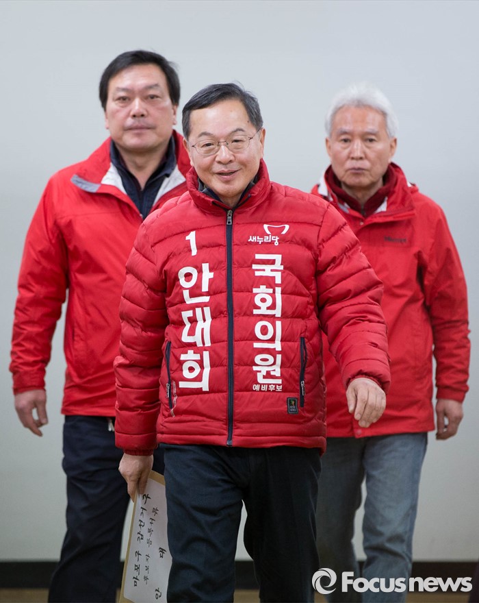(서울=포커스뉴스) 20대 총선 후보자 등록이 시작된 24일 오전 서울 마포구 선관위에서 새누리당 안대희 후보가 등록 서류를 제출하러 들어서고 있다.