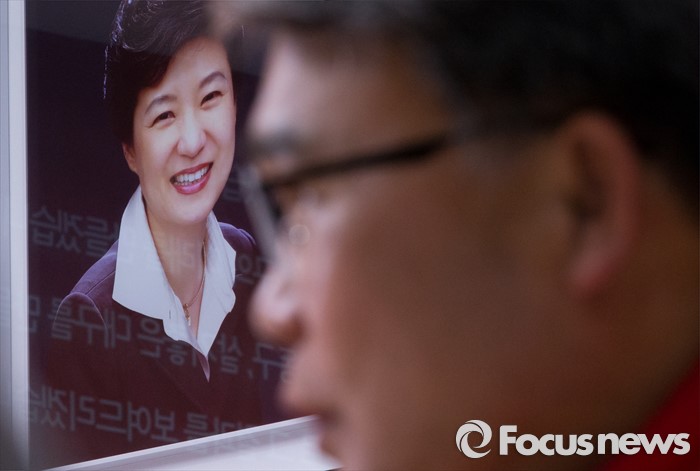 (대구=포커스뉴스) 24일 오후 대구 동구 방촌동의 이재만(대구 동구을) 후보 선거사무소에서 지지자들과 이야기를 나누는 이 후보 뒤로 박근혜 대통령의 사진이 보이고 있다.