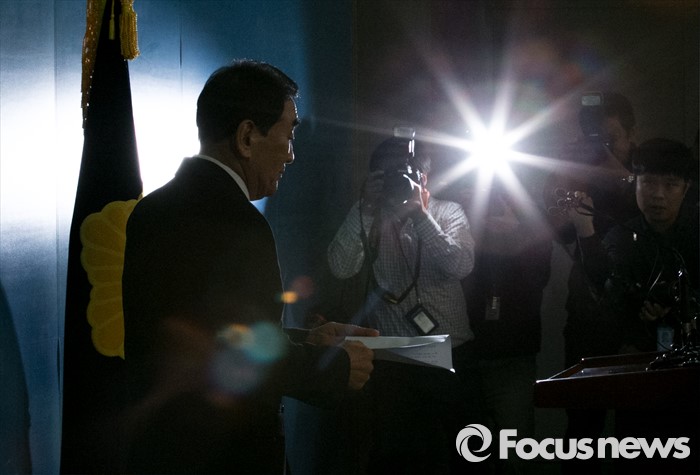 (서울=포커스뉴스) 새누리당을 탈당한 이재오 의원이 24일 오후 서울 여의도 국회 정론관에서 20대 총선 무소속 출마 기자회견을 위해 입장하고 있다.