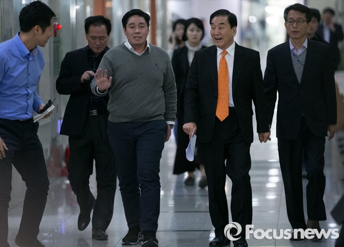 (서울=포커스뉴스) 새누리당을 탈당한 이재오 의원이 24일 오후 서울 여의도 국회 정론관에서 20대 총선 무소속 출마 기자회견을 위해 입장하고 있다.